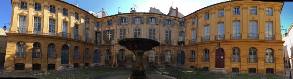 Das waren zwei sehr schöne und wichtige Tage. Wir haben viel geredet; mundfaul war ich allenfalls in der ersten halben Stunde. Und wir haben bei 21°C und strahlendem Sonnenschein ein kleines Touristenprogramm absolviert: Notre Dame de la Garde, in der vor allem die vielen kleinen Ölgemälde an den Wänden auffallen, den alten Hafen (hinter der Baustelle) einschließlich Riesenradfahrt, die Kathedrale, die so aussieht, wie Kathedralen nun mal aussehen, und am zweiten Abend ein Dinner in einem kleinen Hafen bei mir um die Ecke – Bouillabaisse, begleitet von Wein und gefolgt von einem Dessert. Hat uns so viel gekostet wie ein Degustationsmenu in einem 1-Sterne-Restaurant in Frankfurt. Aber egal. Lecker war’s. Am Sonntagmorgen habe ich sie zum Flughafen gefahren und danach den direkten Weg nach Aix-en-Provence eingeschlagen. Dort bin ich nach einem recht schlechten Croissant mit noch schlechterer Konfitüre einfach nur durch die Stadt spaziert und auf Märkten herumgestrolcht und habe alles auf mich wirken lassen.